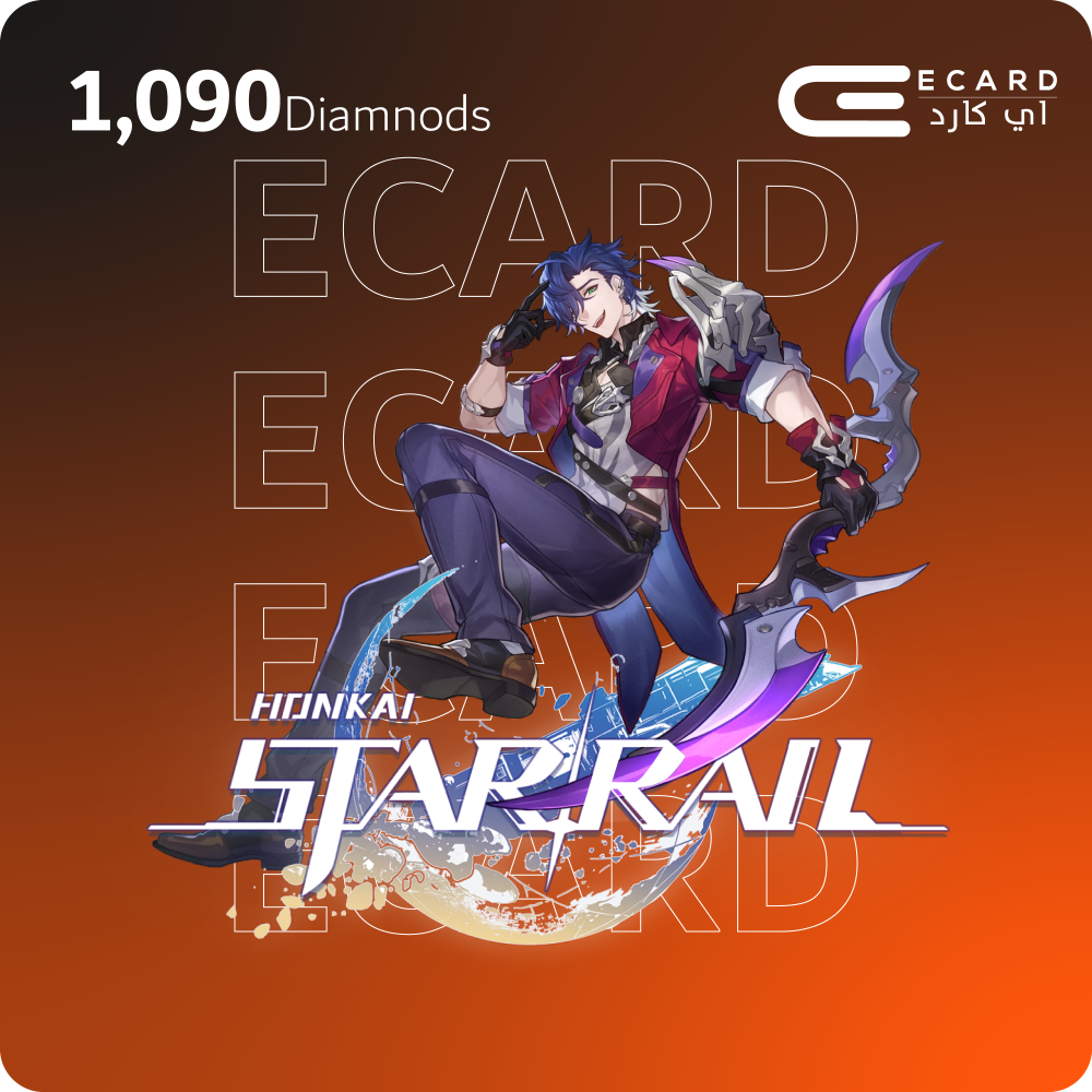 - الكمية: تحتوي البطاقة على 1090 وحدة من الألماسات الرقمية المخصصة للعبة هونكاي ستار ريل.